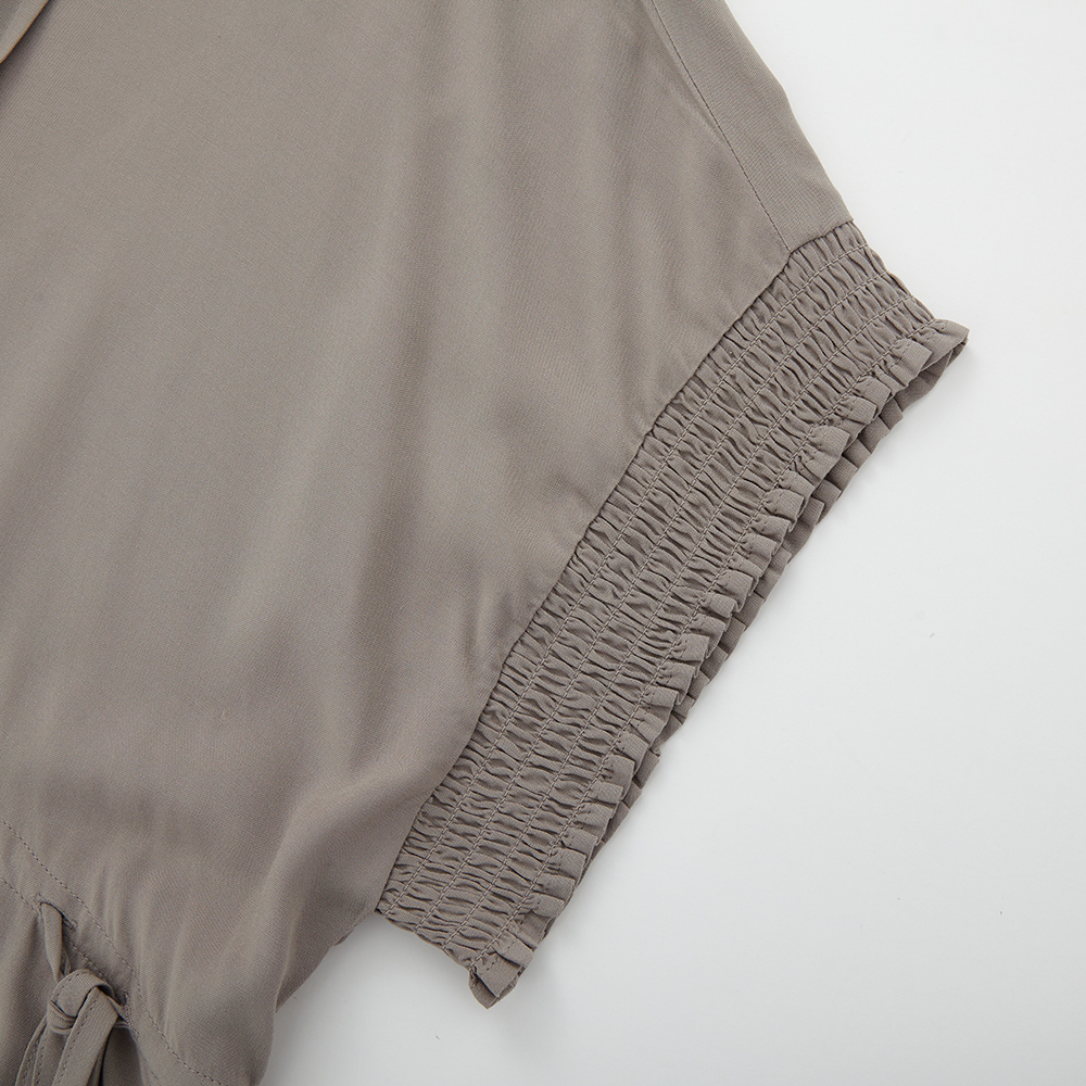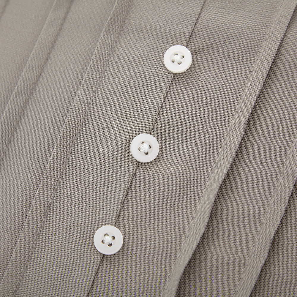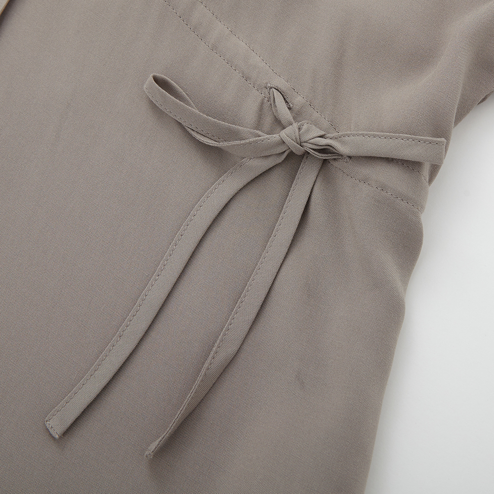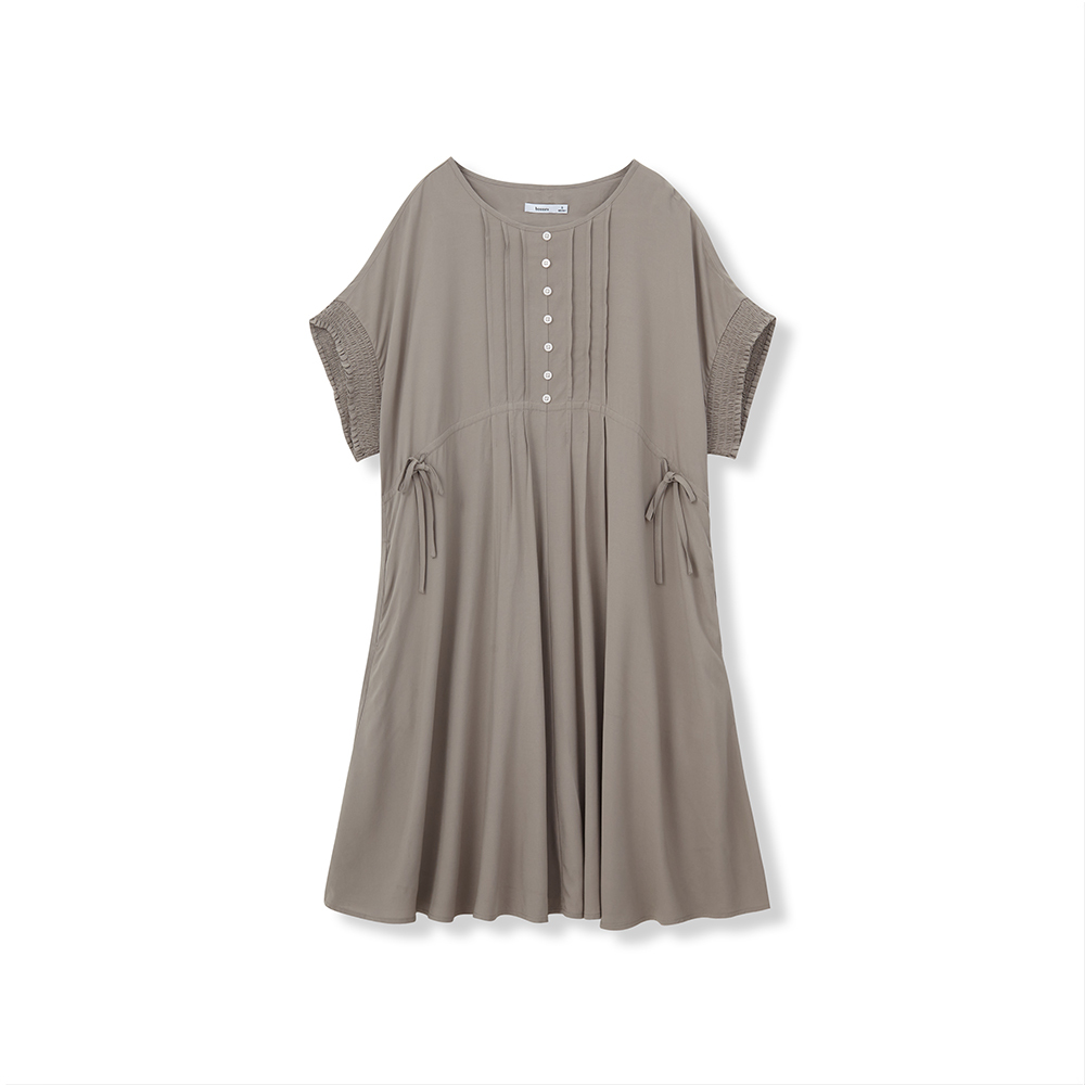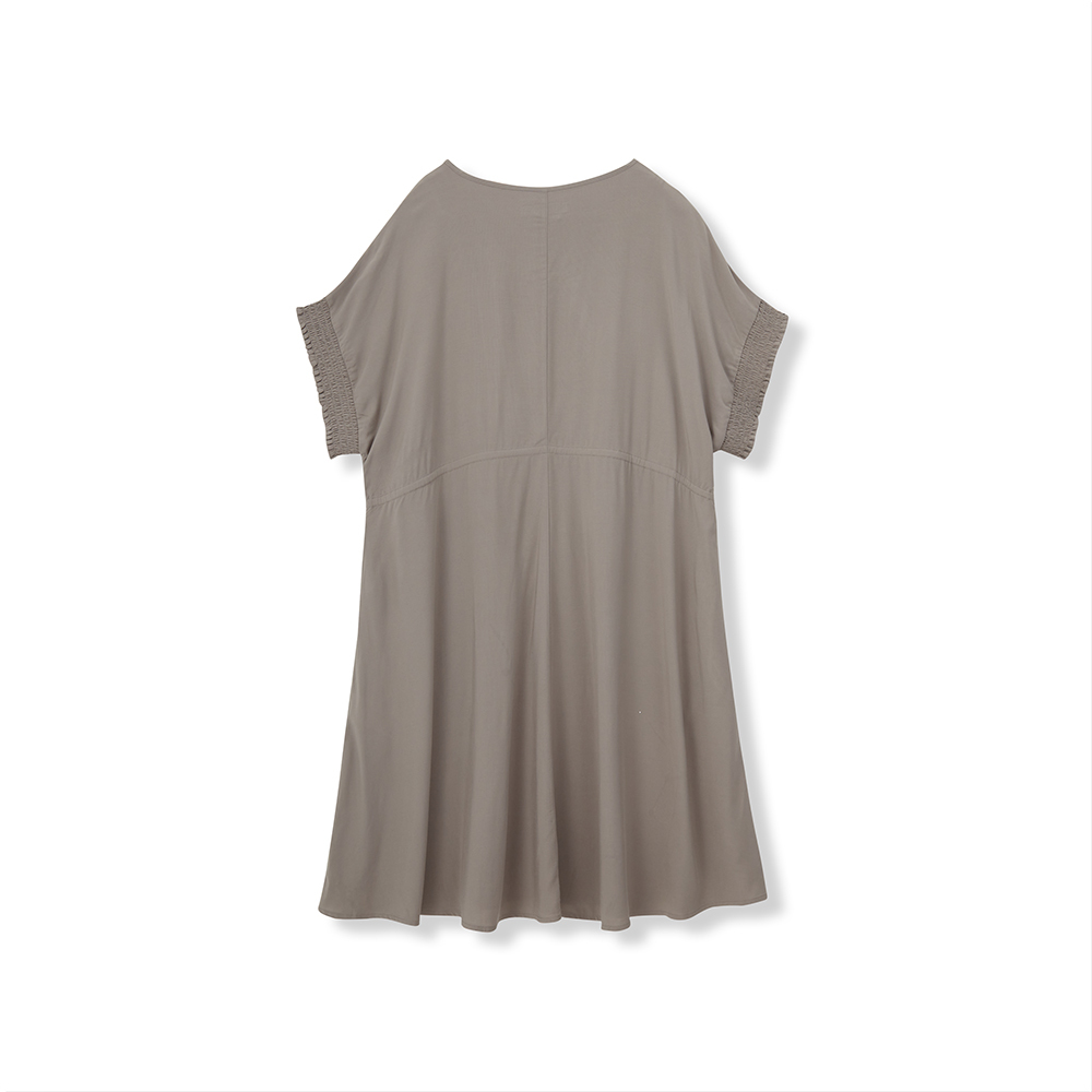 純色及膝連衣裙。修腰設計,傘型裙擺,簡潔大方,最適合配搭日常造型